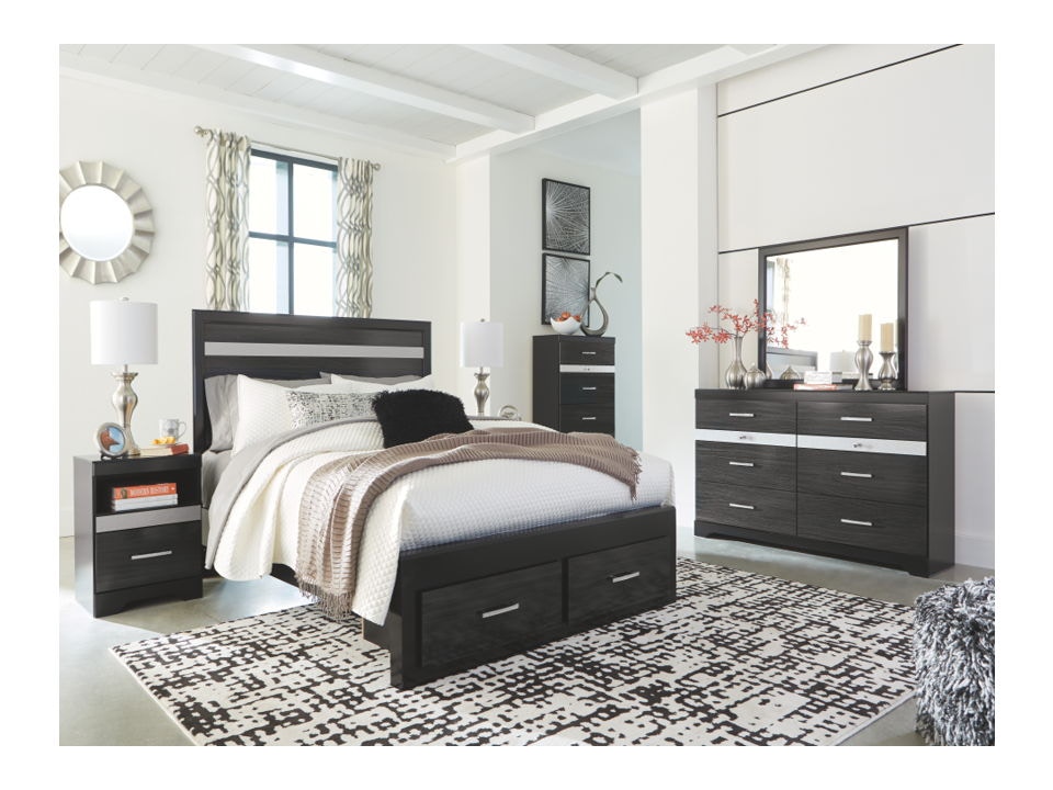 Signature Design By Ashley Starberry Black Finish Glam Queen Storage Bed With 2 Drawers Glitter Accent Panel Royal Furniture Platform Beds Low Profile Beds