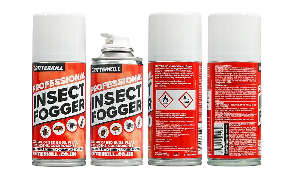 Critterkill Insect Fogger Total Release Automatic One Shot Fogging Insecticide For Fleas Bed Bugs Flies Moths 150ml 150ml Amazon Co Uk Garden Outdoors
